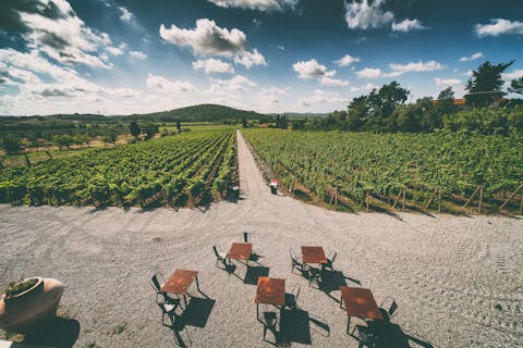 Tenuta Casadei is a garden-like estate located in Alta Maremma, near Suvereto, just 13 km from the seashore. The grounds may be explored on foot or aboard a horse-drawn carriage, alone or with a guide, and offer an enlightening educational path that illustrates and explains the traits of the local ecosystem. The estate showcases the values of biodiversity alongside luxuriant sweeping vineyards planted with cabernet sauvignon, cabernet franc, petit verdot, merlot, syrah, muscat, ansonica, and other classic Mediterranean grape varieties. Tenuta Casadei’s flourishing fields are all nourished and cared for using sustainable agricultural practices and organic and biodynamic techniques.